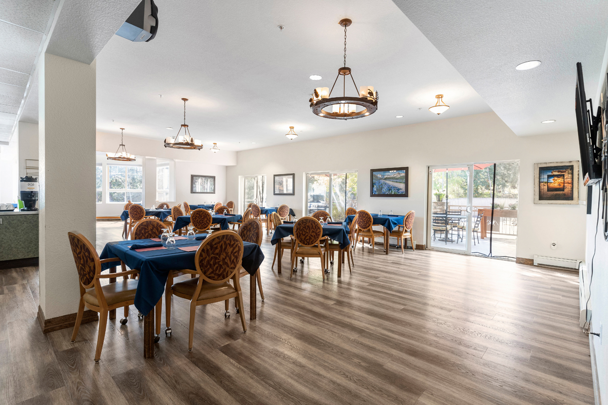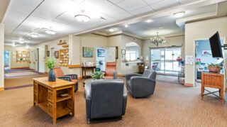 Nestled beside a beautiful meadow, Elk Run Assisted Living boasts striking mountain views, with deer and elk often roaming freely just outside. The community is designed to inspire a life well-lived, taking full advantage of its natural surroundings to offer residents a peaceful and picturesque environment. Walking paths, patio and dining area invite residents to enjoy the outdoors in comfort.